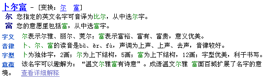 2. 點擊“提交”按鈕,系統(tǒng)即可為您起出符合要求的名字。以下是名字“卜爾富”的解釋信息。