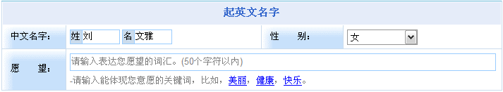 - 根據(jù)用戶對英文名的期望,起出符合意愿要求的英文名。