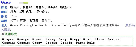 2. 點擊“提交”按鈕,系統(tǒng)即可為您起出符合要求的英文名。以下是英文名“Grace”的解釋信息。