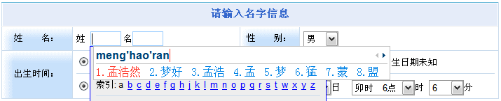| 使用人名解析功能解析名字時(shí),您可以在輸入姓氏時(shí),使用輸入法將整個(gè)名字打出來(lái),然后按空格鍵,您的姓氏和名字會(huì)自動(dòng)填入到對(duì)應(yīng)的輸入框中。下圖演示了這一過(guò)程。